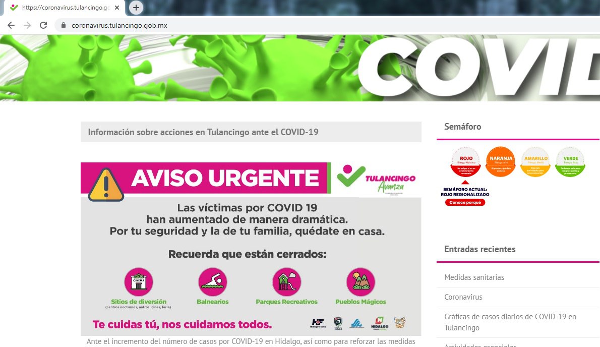 Fue puesta en servicio la página institucional coronavirus.tulancingo.gob.mx